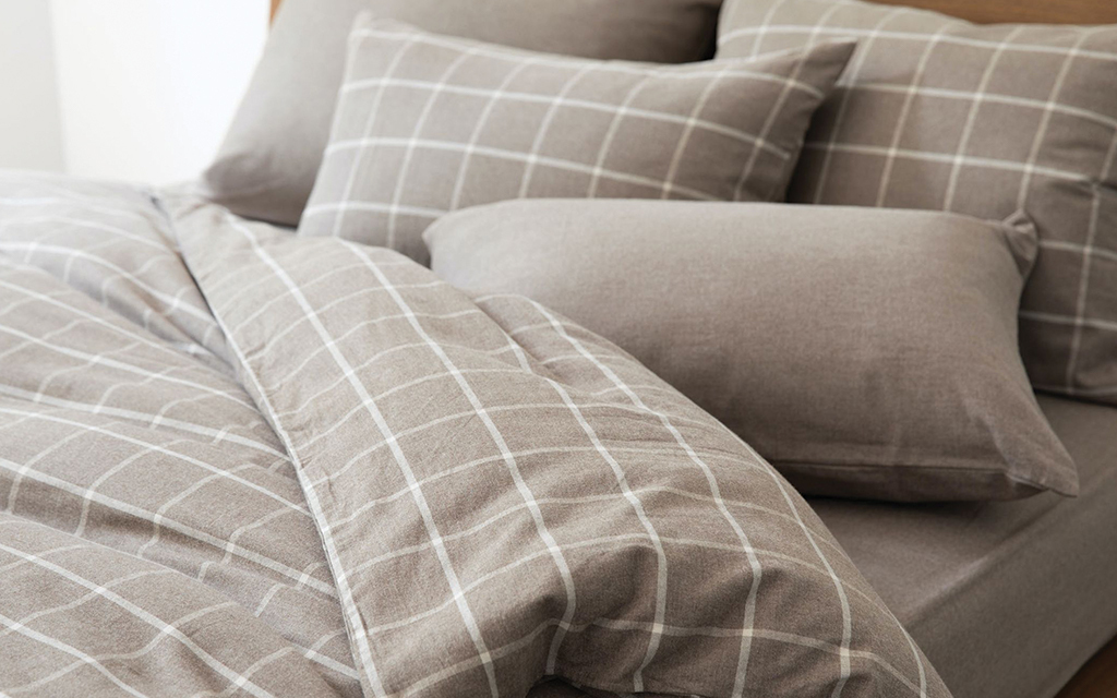 法蘭絨織布料表面施以磨毛加工,帶來溫暖鬆軟的質感,睡眠時更舒適。