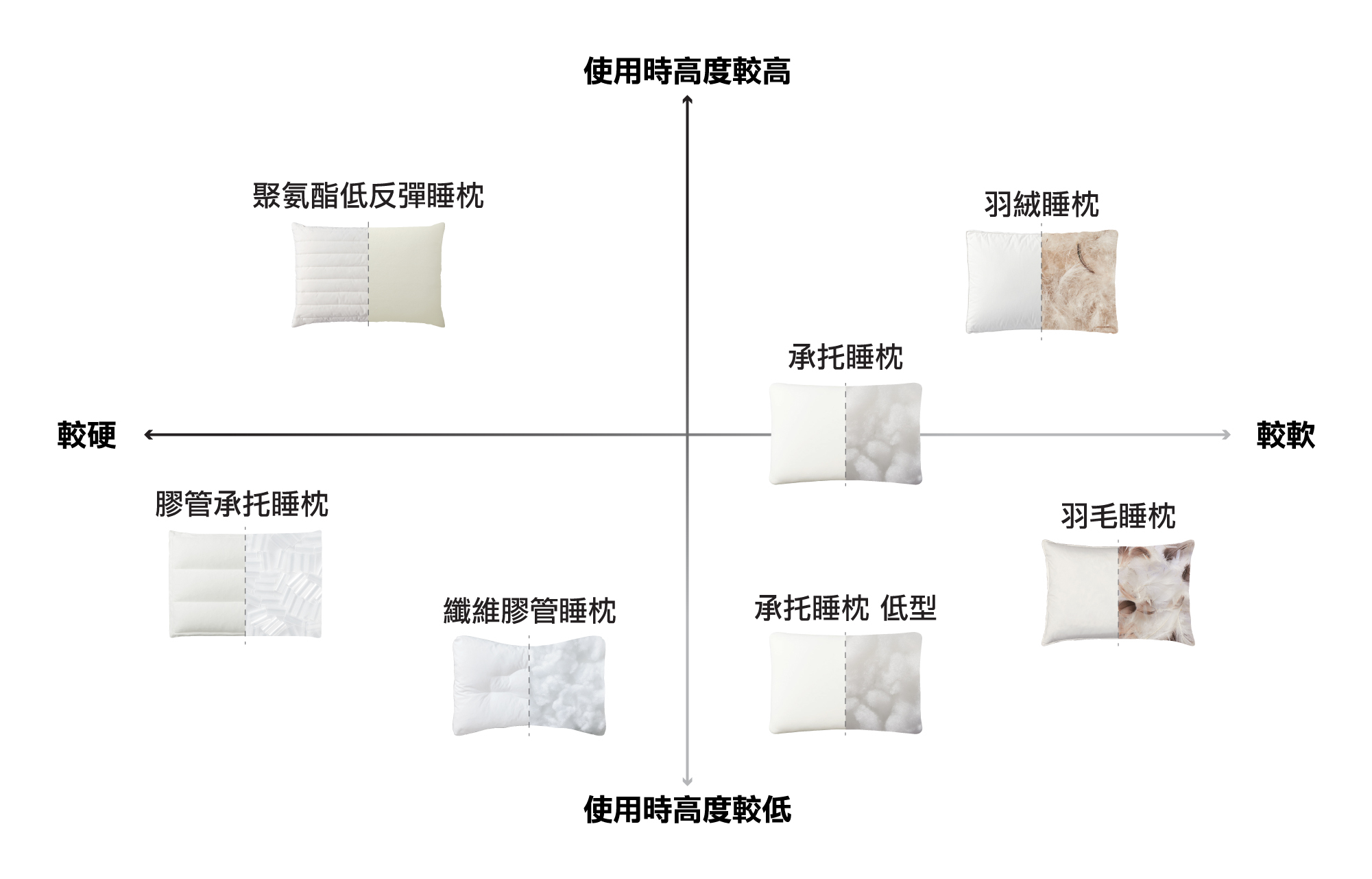 合適的睡枕軟硬度因人而異。較軟的睡枕可舒適貼合頭部曲線,並因應睡眠姿勢改變形狀;較硬的睡枕則具較低包覆度,能帶來穩定睡感,同時令睡眠時更感清爽。