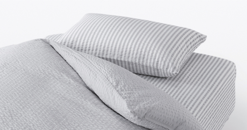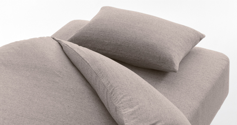 參考酒店的寢室布藝,使用纖維細長的棉花以高密度編織而成,帶來柔滑觸感及自然光澤感。